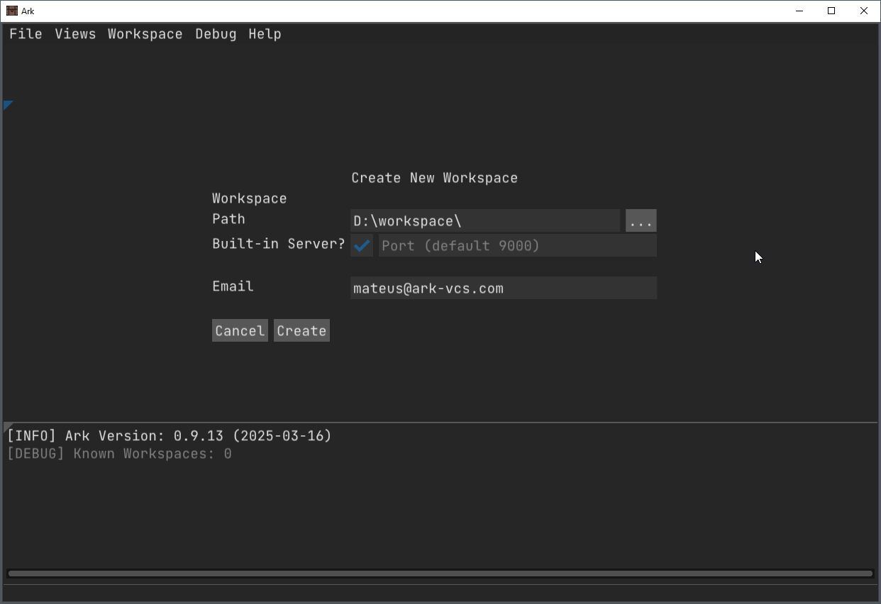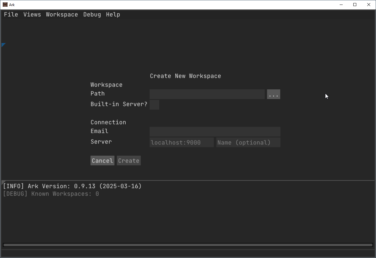 If you're a solo developer, you'll most likely want to start by creating a workspace with a built-in server so that any time you run Ark it just handles the server for you.