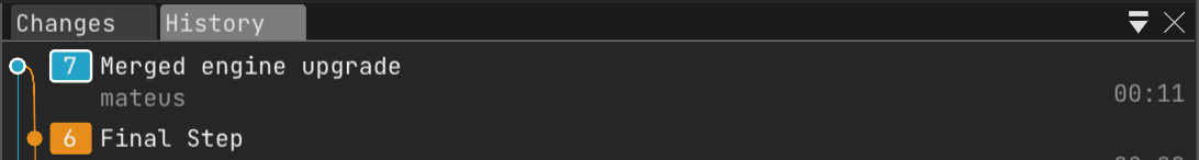 Once all conflicts are resolved, you can now commit your workspace changelist with the merge. The history panel will reflect that this changelist has been merged.
