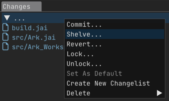 To create a shelf you right-click on any workspace changelist and select Shelve....